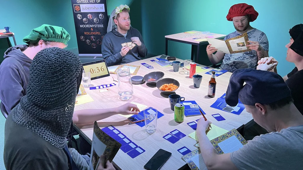 Jubensha is een real life game, afkomstig uit China. Jubensha is een mix tussen een moordmysterie ('Cluedo'), 'Weerwolven van Wakkerdam' en rollenspel (Larp). Doel: ontdek wie van de aanwezigen de moordenaar is. Of als jij de moordenaar bent: voorkom dat de anderen NIET op je stemmen. Daarom is het belangrijk wat jij wel en niet deelt met de andere spelers in de ruimte.